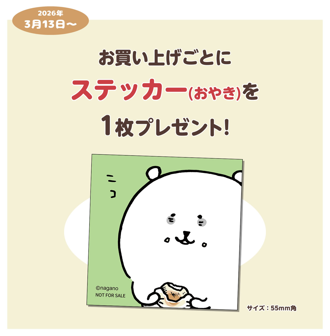 お買い上げごとに「ステッカー(おやき)」を1枚プレゼント!