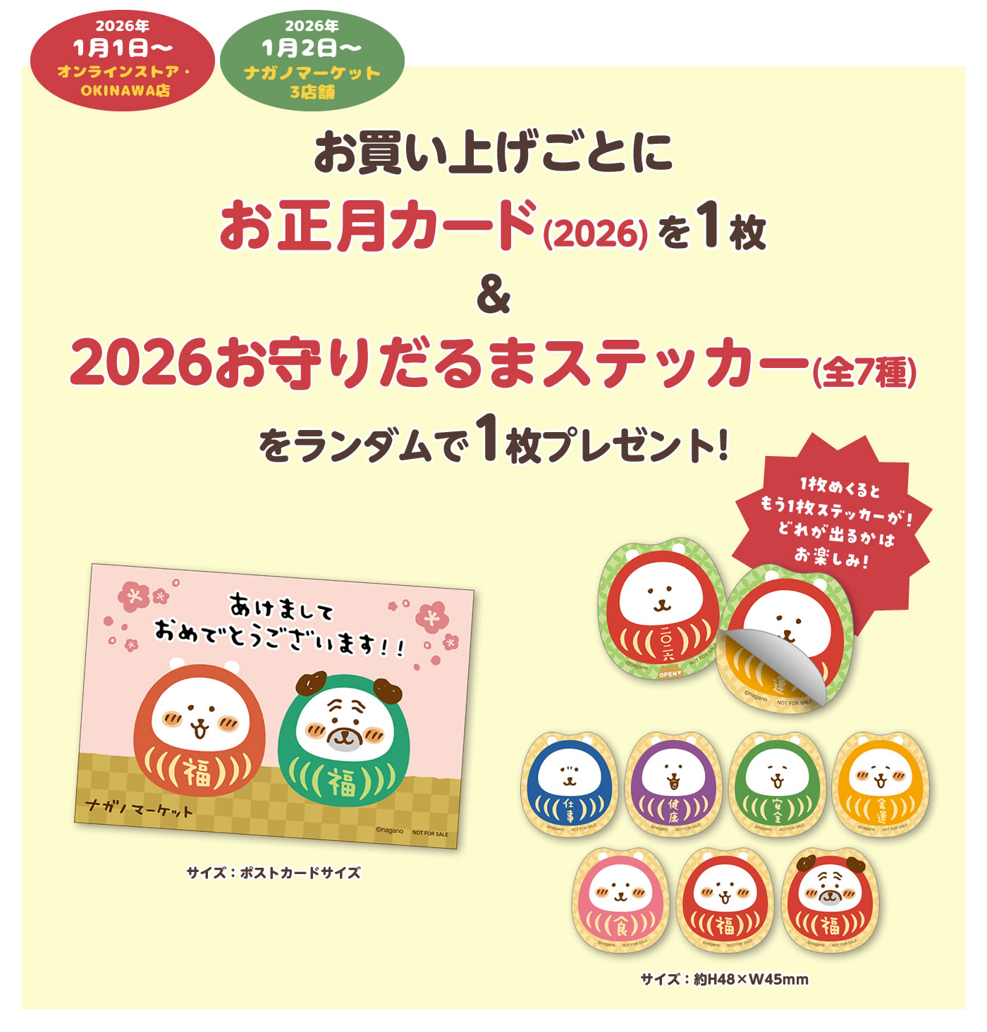 ■お買い上げごとに「2026お守りだるまステッカー(全7種)」をランダムで1枚プレゼント!
