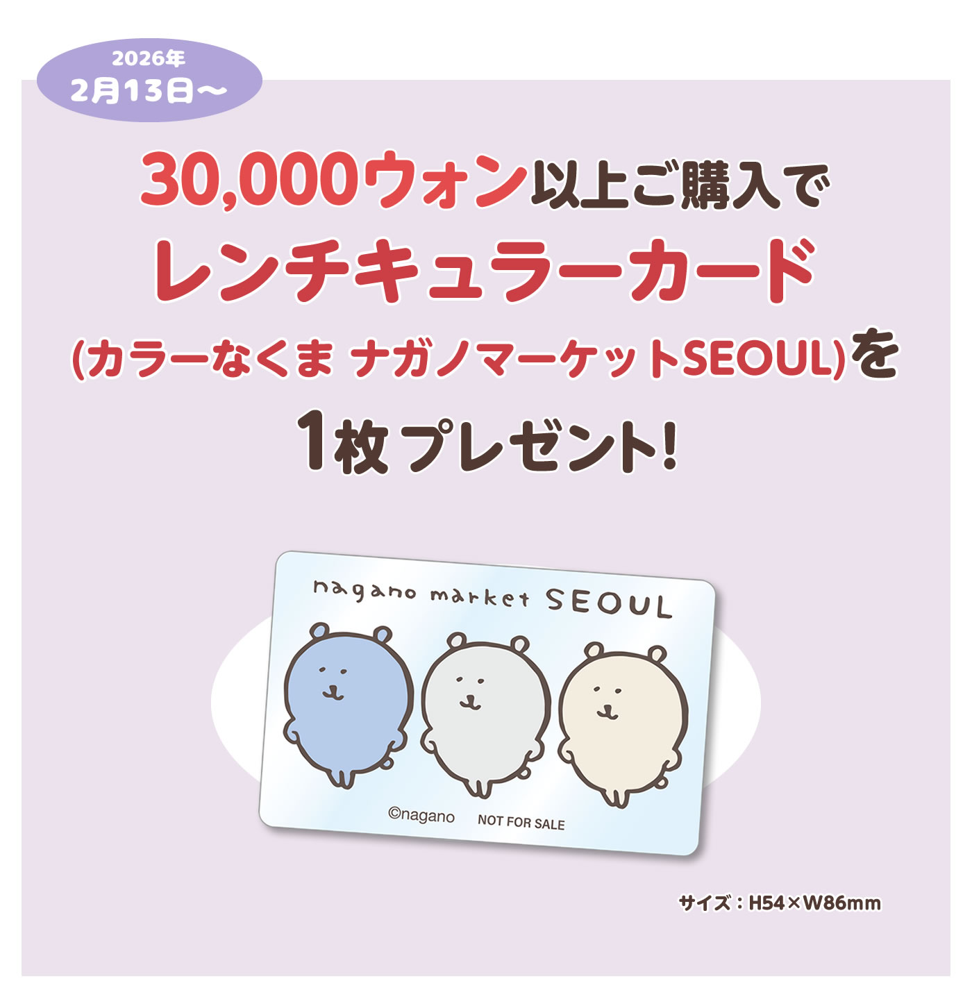 30,000ウォン以上ご購入で「レンチキュラーカード(カラーなくま ナガノマーケットSEOUL)」を1枚プレゼント!
